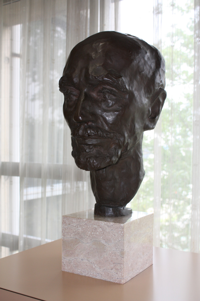 文庫は図書館の2階にあり、誰でも自由に閲覧できる。谷川の蔵書のうち、洋書は法政大学に、そして和書はこの『市立図書館』に寄贈された。それらを収蔵するために、図書館の一室が文庫として使われている。文庫内には谷川の略歴や写真が掲げられ、頭像が飾られていた。蔵書数は、書籍が約12,200冊、雑誌が約2,200冊。そして蔵書のほかに、自筆の文書やコピーなどがあることも判明。私の訪問に合わせて、古橋さんたちが探してくださったとのこと。その中には、日本経済新聞で人気のある自伝的な連載記事「わたしの履歴書」のための自筆原稿もあって驚いた。田中館長に「貴重な文化遺産として、こういう史料をぜひ大切に保管してください」とお願いする。この文庫にはほかにも貴重な史料がありそうなので、また改めて訪問する機会を設けたい。