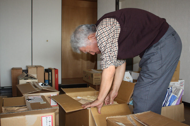 おもしろいのは、6つの段ボール箱に入った史料群。これは『勉強する会』が岩波書店から借り受けている。もともとは岩波書店が持っていたもので、同会が借りるにあたって、谷川氏が岩波書店にかけあってくれたそうだ。中には原稿、雑誌や新聞の切り抜き、メモ、旅行記、谷川宛の書簡などが、ほぼ未整理の状態で入っていた。書簡などは270名余からの2,000通以上が残されているそうで、これらの史料を翻刻し、私に送ってくれたような冊子を作成している。
